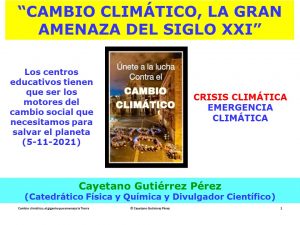 El Cambio Climático o calentamiento global es el problema ambiental más importante a corto, medio y largo plazo que existe en nuestro planeta, que amenaza a las generaciones futuras, como consecuencia de mantener un estilo de vida y unos hábitos de consumo insostenibles, con graves consecuencias sociales, económicas y políticas.